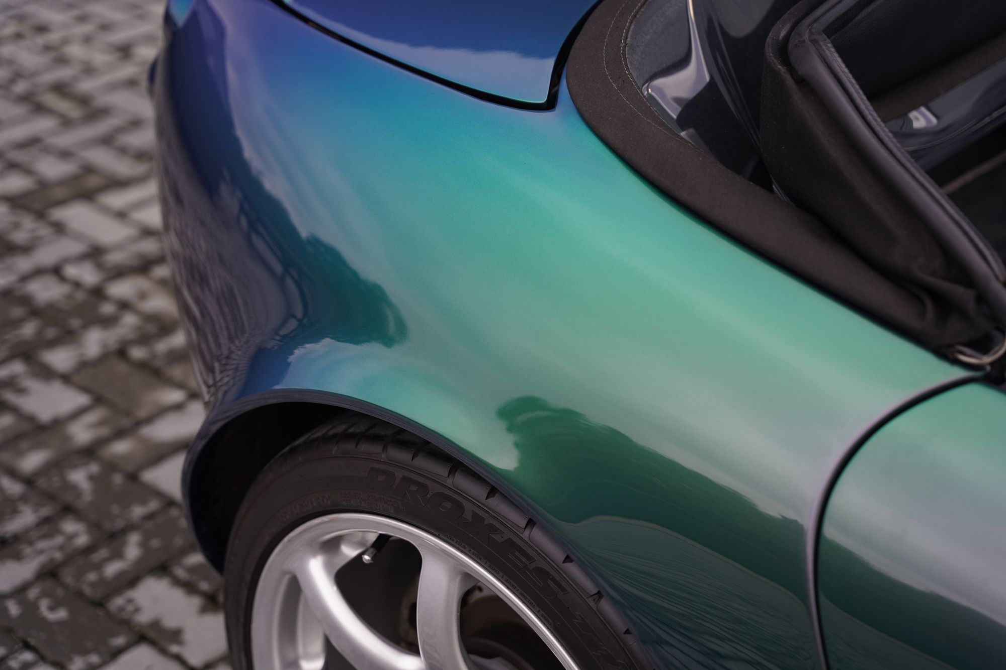 This particular Tamora is a superb example, having covered just 28,200 miles under two long-term ownerships. Finished in Reflex Green, the car presents incredibly well throughout and features PPF along the leading edge of the nose. The interior was updated in 2024 with a full leather retrim, replacing the original ‘Charcoal Bison’ material, but retaining the original colourway, making for a luxurious feel that really sets this car apart. The stereo has also been upgraded with a touchscreen Pioneer unit. The original Pioneer unit is still present. The optional extra 18-inch ‘Spider’ wheels complete the look, with a bright silver finish.
