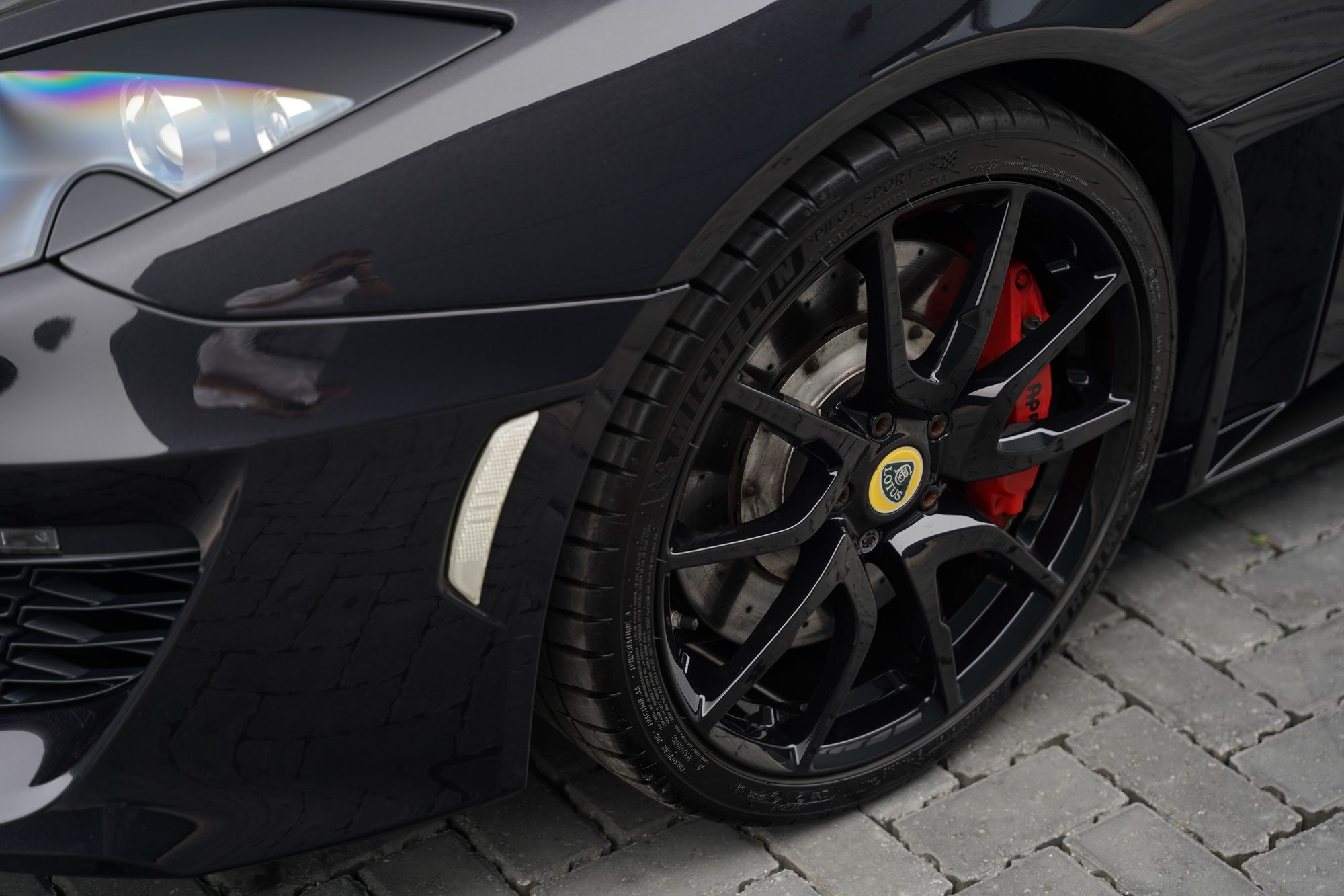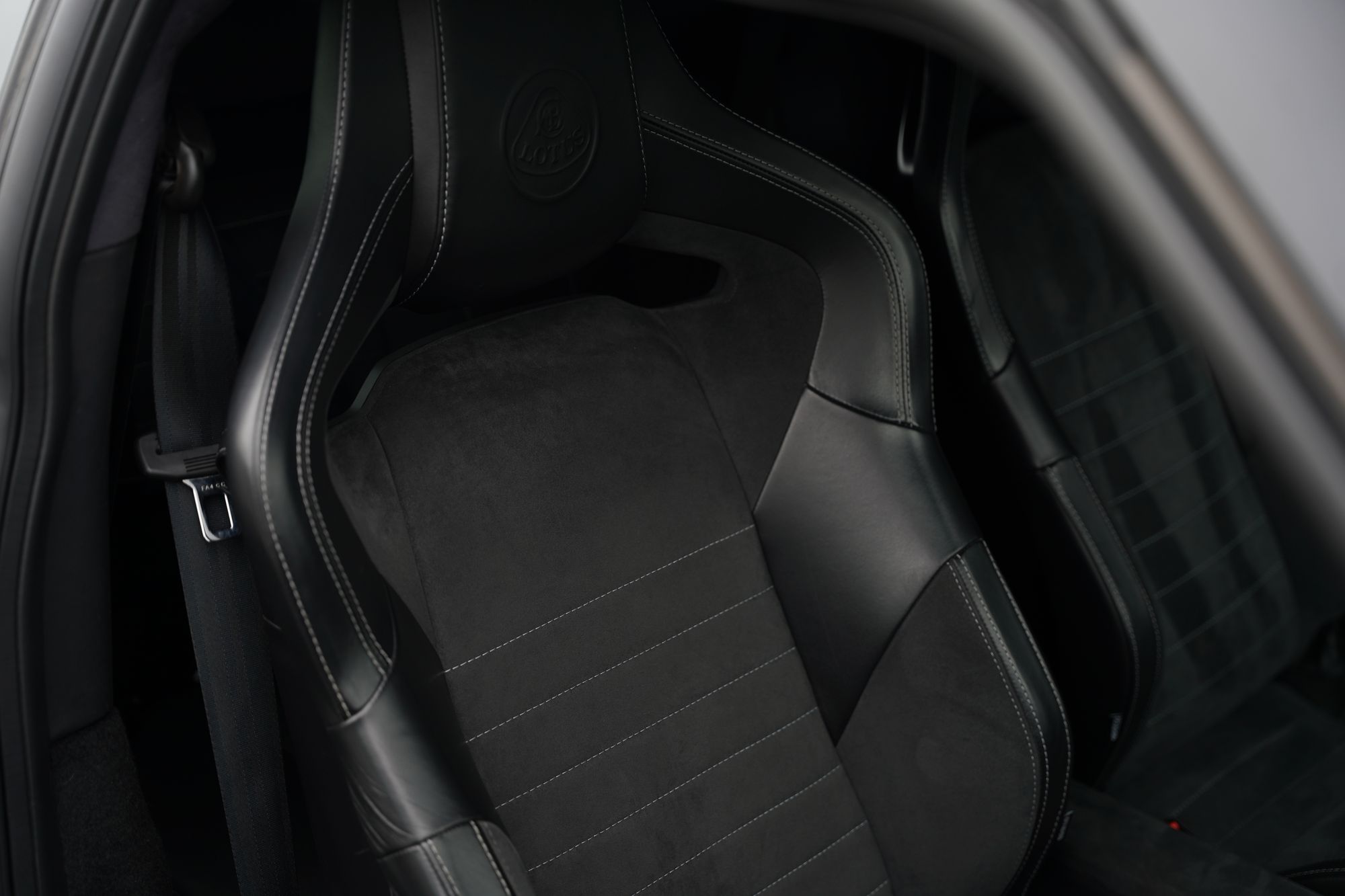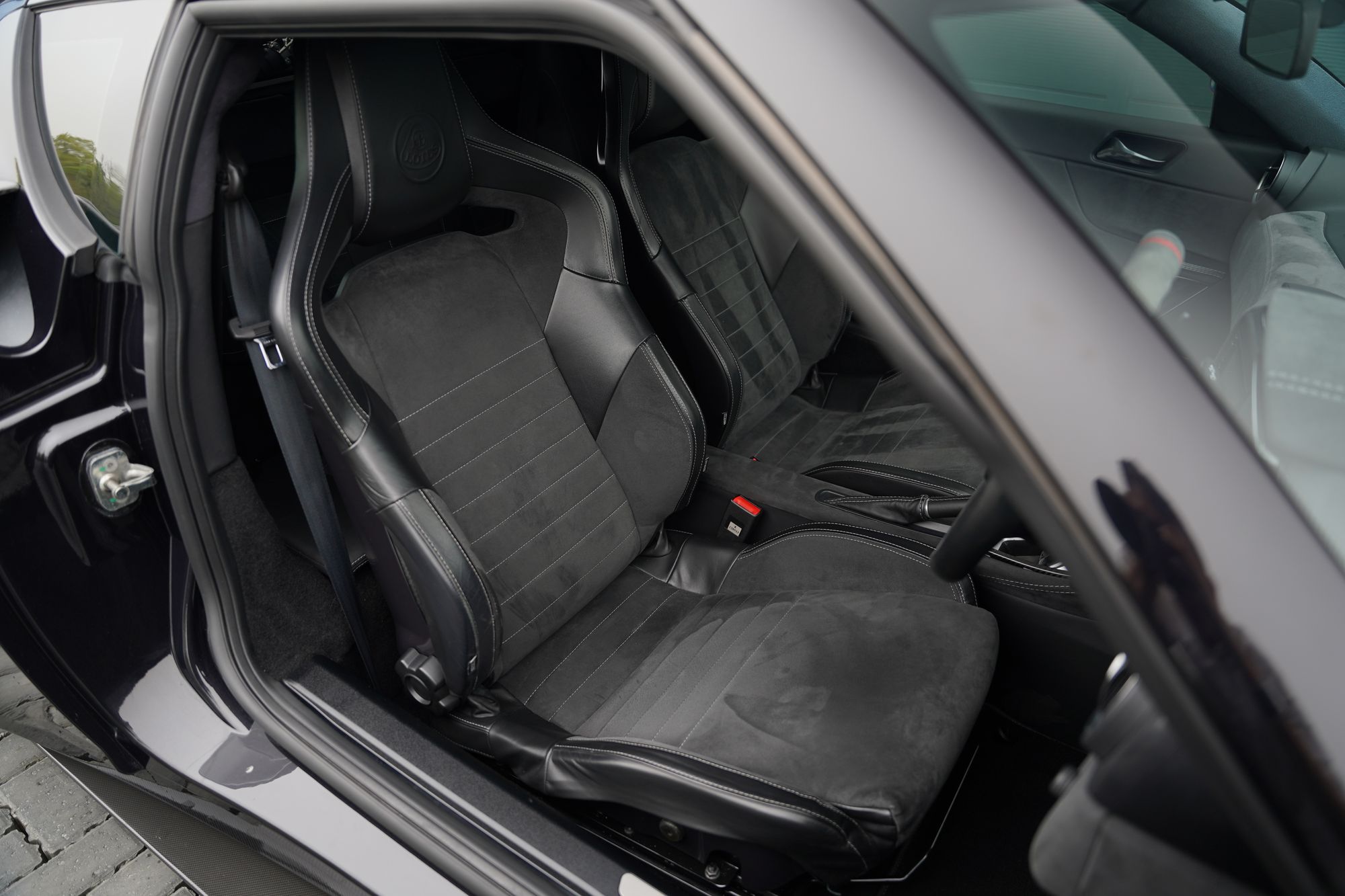 This Lotus is finished in C186 Metallic Black with gloss black alloy wheels and a full black half leather, half alcantara interior. Most notably this Evora is specified with 2+2 seating, the IPS semi-automatic transmission and cruise control on top of the standard high specification.