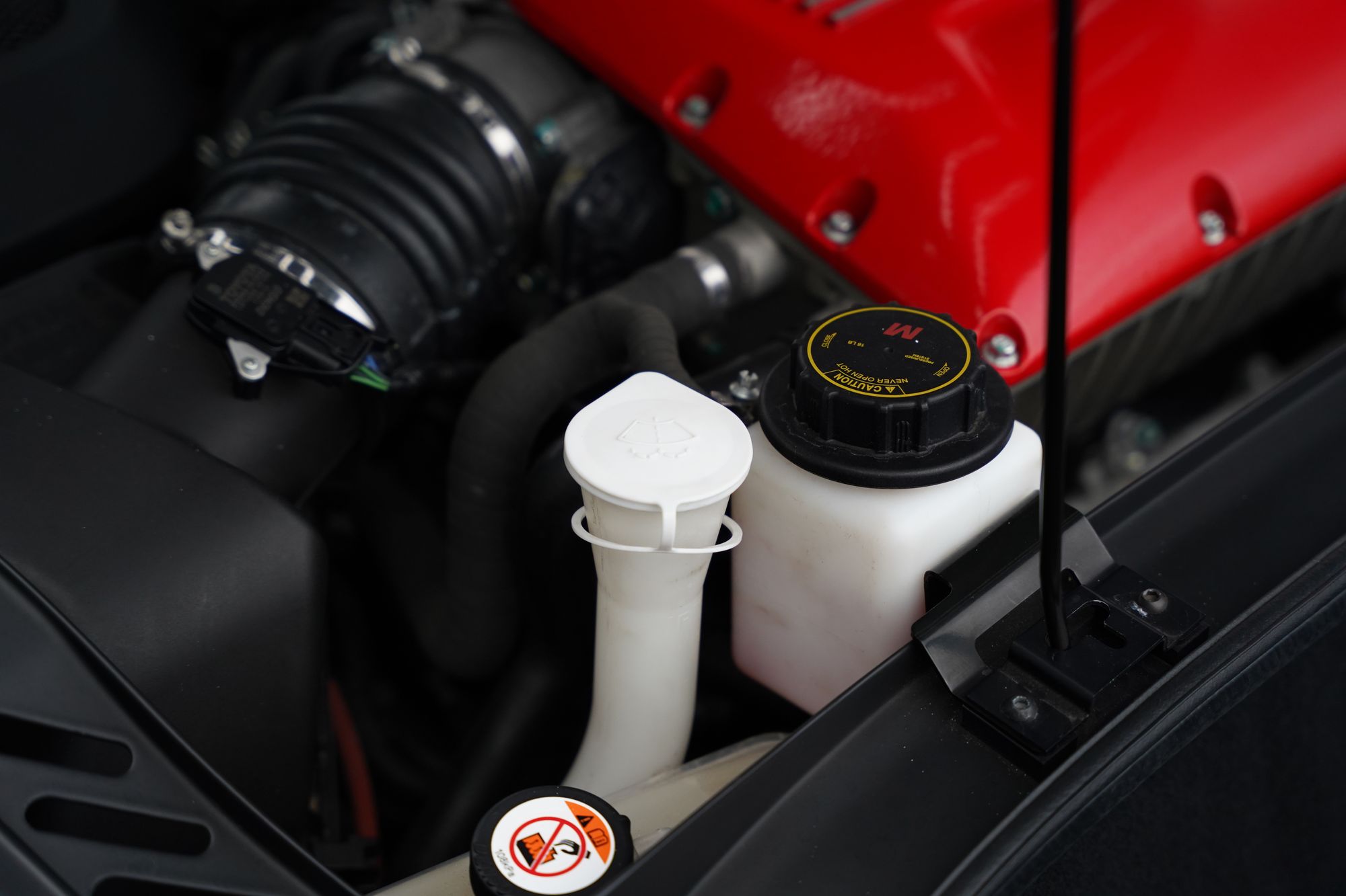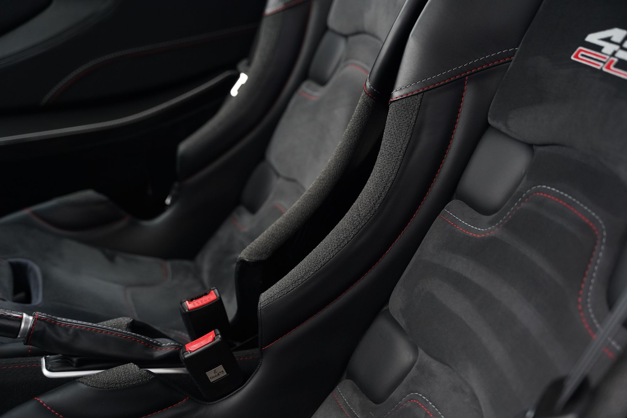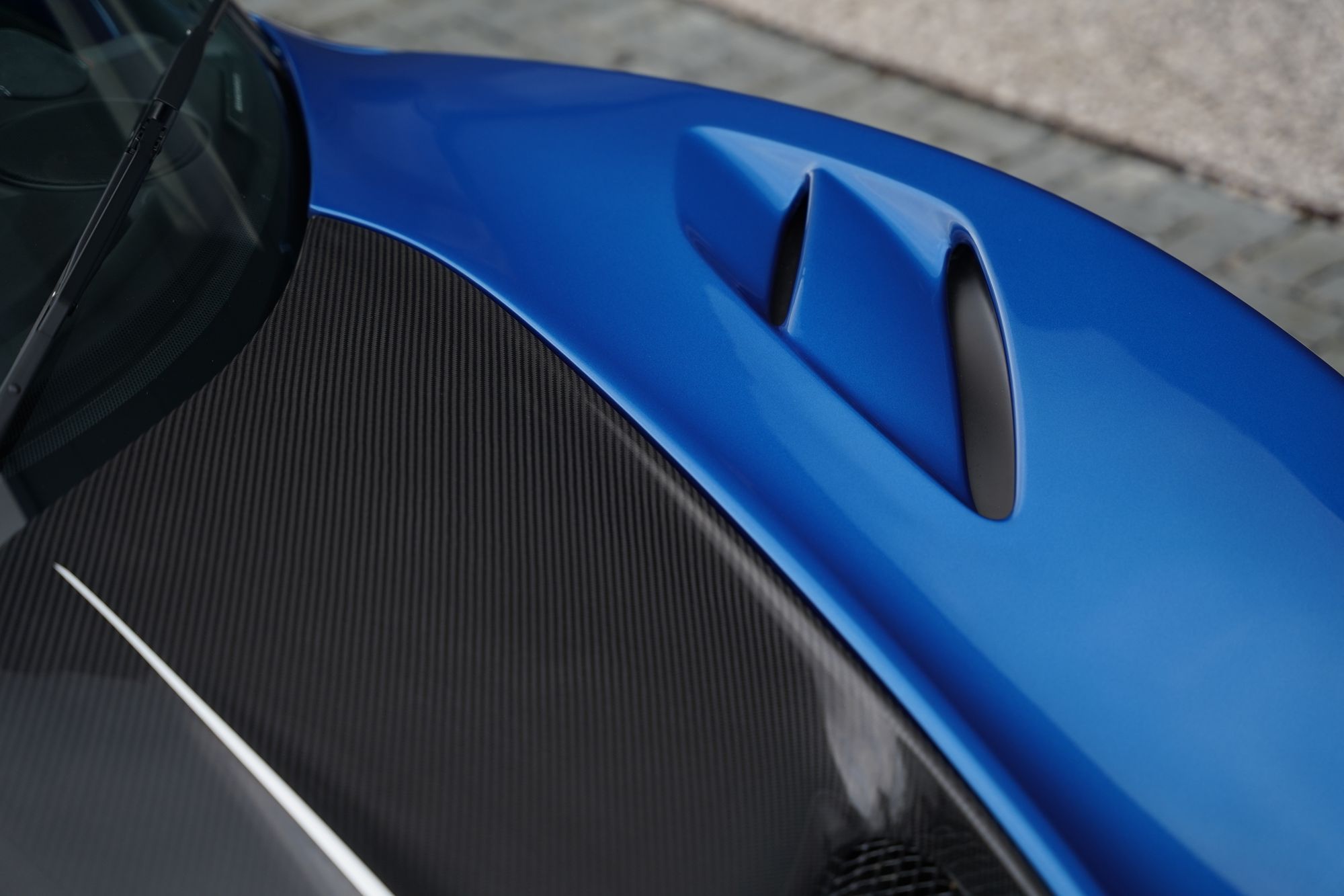 Finished in the elegant Essex Blue, and specified with the exterior Black Pack, the car also features subtle hints of silver and red for the perfect colour combination. Alongside the newly refurbished Arctic Silver lightweight forged wheels you’ll find silver pinstriping on the front bumper inserts, front clam access panel and carbon hard top as well as the rear spoiler mounts. Minimal hints of red are provided via the purposeful AP Racing brake calipers, 430 CUP decals and the fixed rear tow strap.