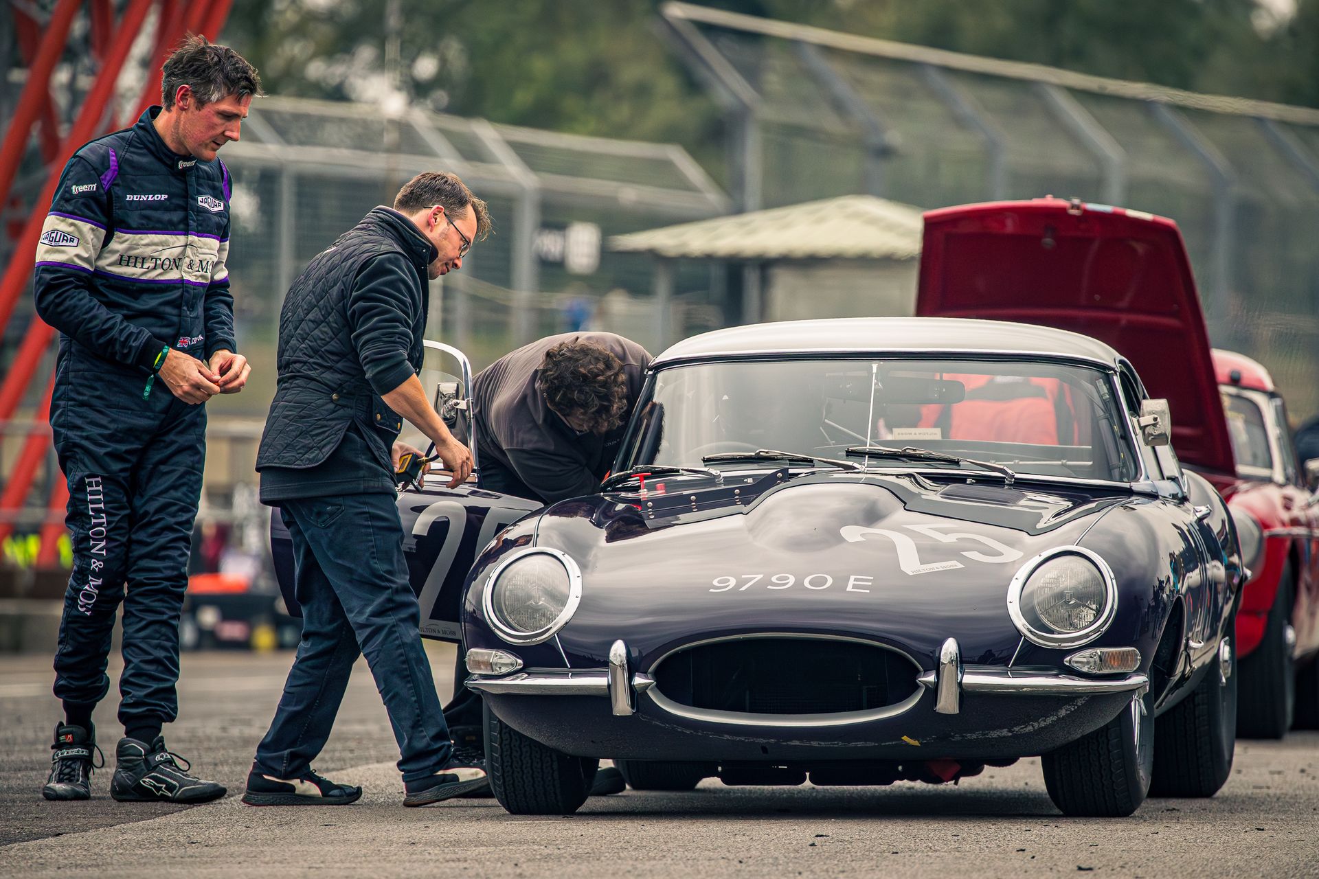 The Hilton & Moss Motorsport team enjoyed a fantastic weekend at Castle Combe Circuit as William Garrett and Tim drove our Pre-’63 Jaguar E-Type to a hard-fought victory in the GT & Sportscar Cup.