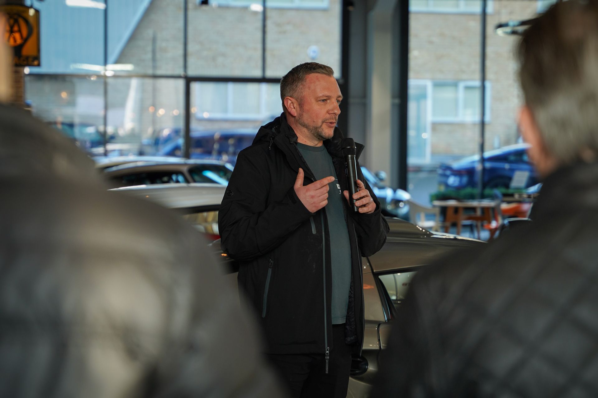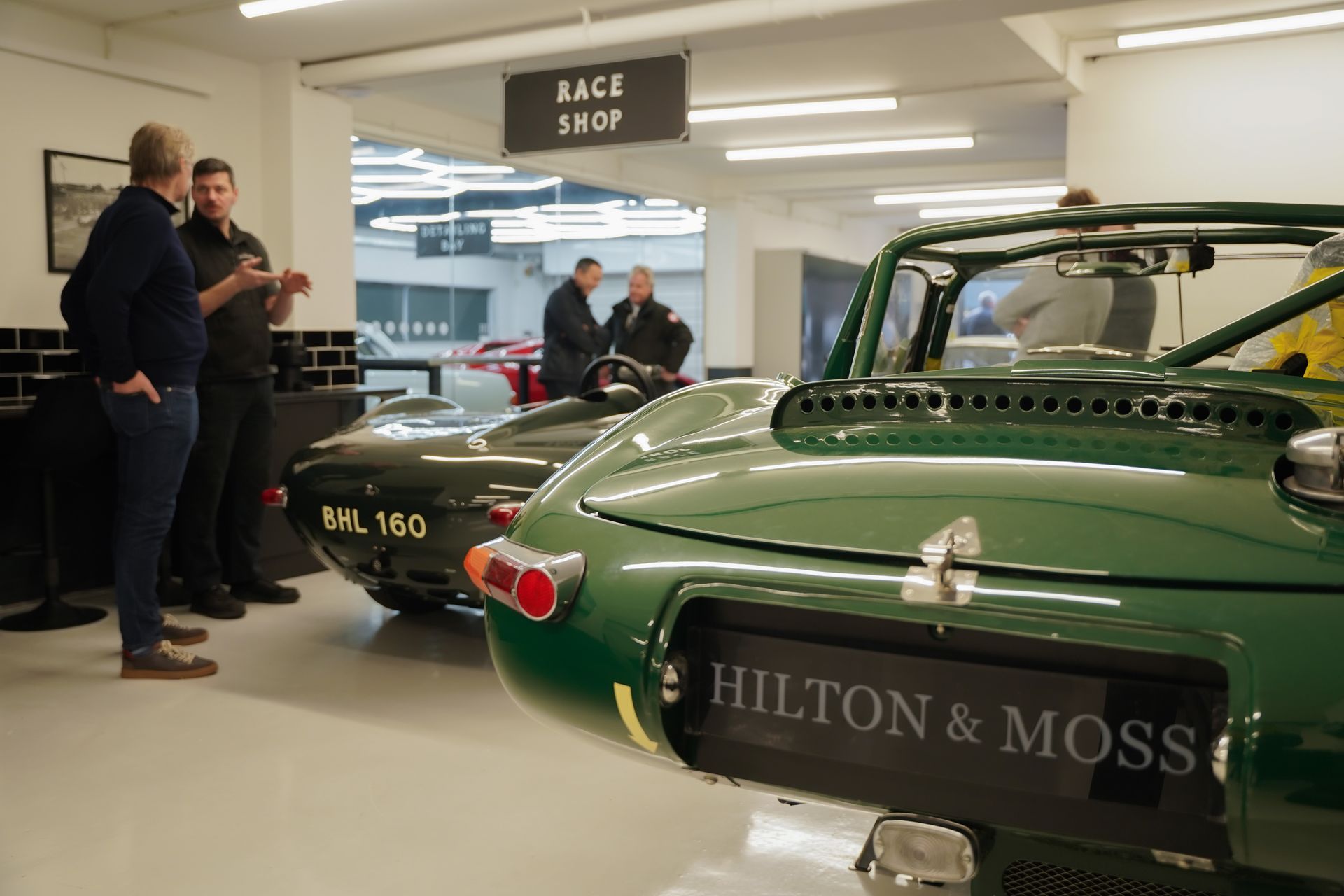 For many, the highlight was exploring our historic race cars on the second floor and the race shop. Mark O'Neill, Hilton & Moss Motorsport Manager, led tours and answered questions about what goes into preparing and maintaining race-ready vehicles. On display in our race shop was Hilton & Moss’s historic Pre'63 Jaguar E-Type, which made its debut at Donington Historic Festival last year and will be competing throughout the 2026 season.