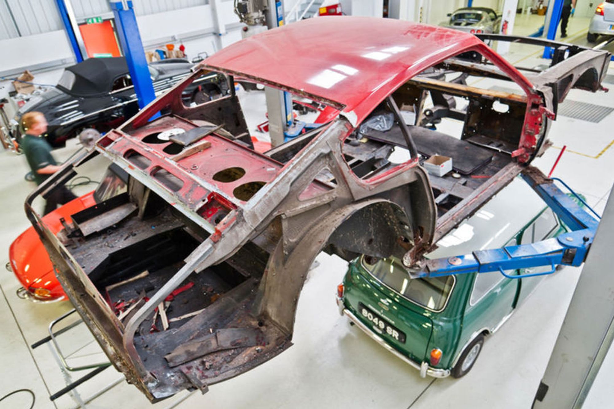 When a good client of ours asked us to restore his prized Aston Martin, we were delighted to be given the opportunity to take on such an exciting project. He had owned the car from new and wanted to restore it to its former glory. This is a unique car in that it had a body kit retro-fitted in Newport Pagnell, and it’s one we have never seen before. As soon as we got our hands on the car, we carried out a detailed appraisal and road test before stripping it. The car drove as well as any Aston V8 we have driven, so we then removed the engine and transmission which was collected by Geoff Page and his team with instructions to strengthen various elements related to the mounting of the engine and transmission, in addition to a fully built engine. As we stripped the Aston, it became quite clear that despite the relatively benign appearance of the exterior, the car had suffered very badly from rust in a host of areas – principally the sills.