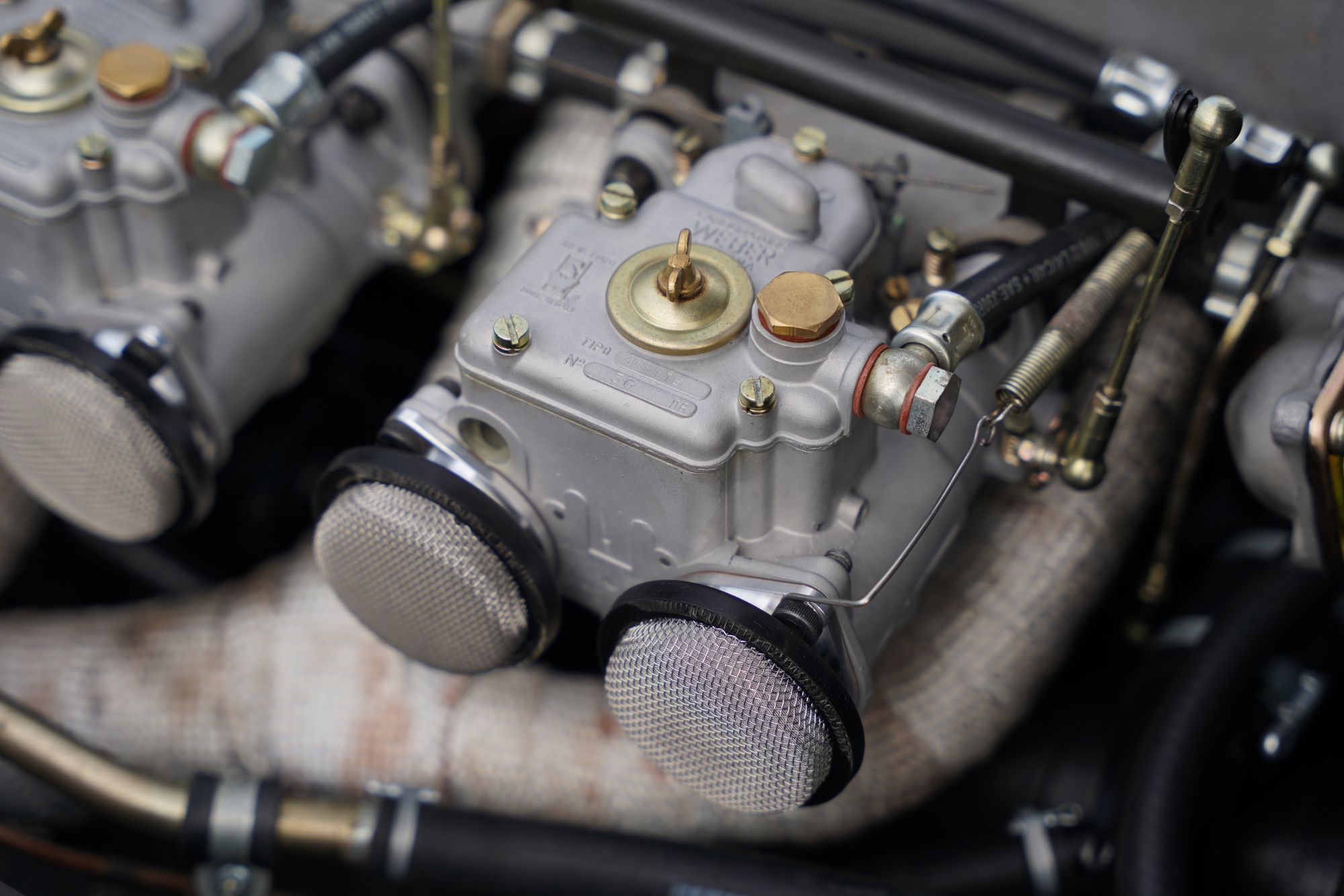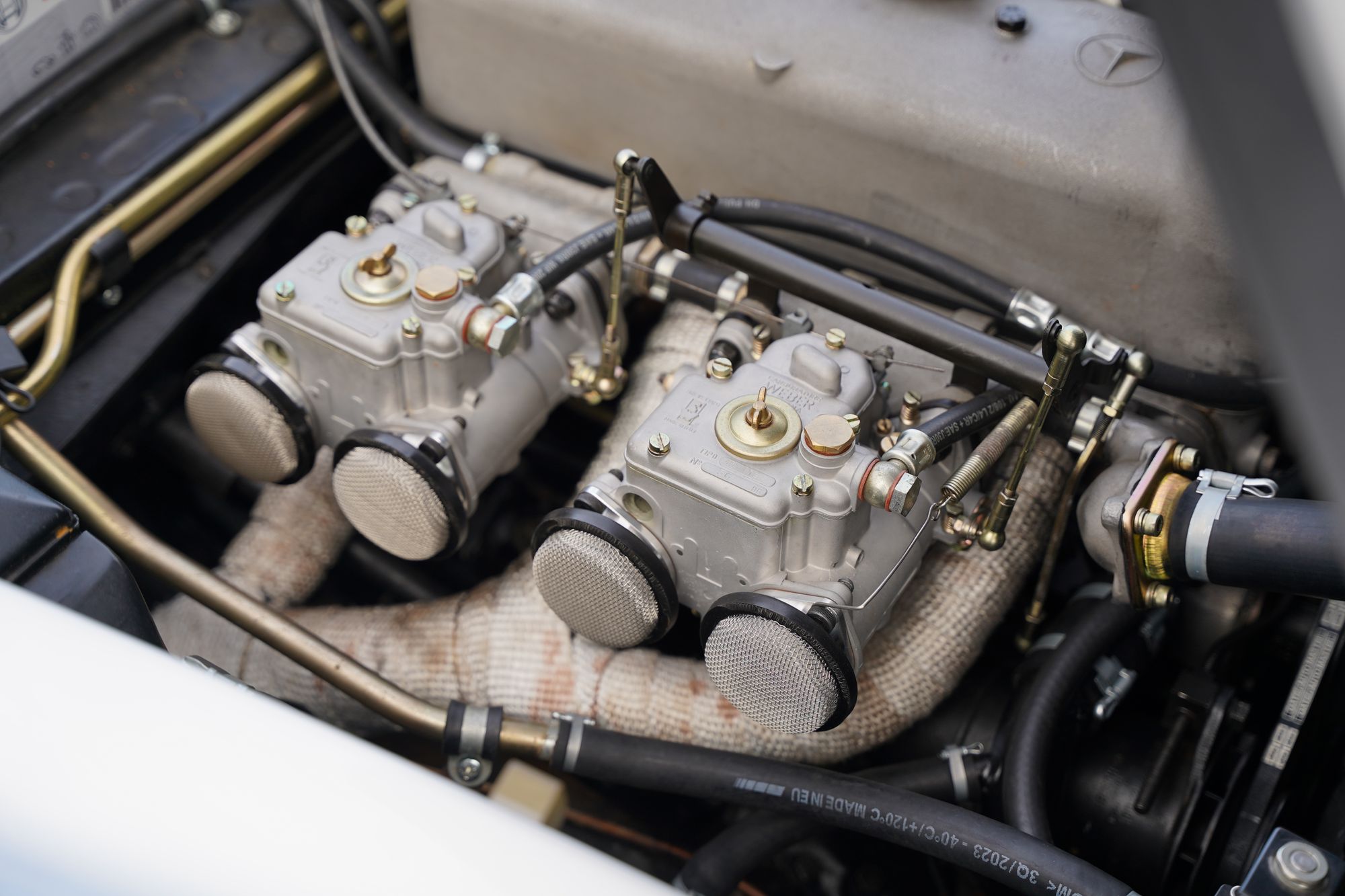 This car, like many 190SLs, had received a twin Weber 40 DCOE conversion, a modification we often complete to improve performance and fuelling over the standard Solex units. However, as is common, the reproduction ‘Spanish’ Weber carburettors had been installed with generic jets and needles. The correct fuel mixture is essential to any engine, and over the years we have developed the ideal setup for the 190SL’s engine, which we installed to this car.
