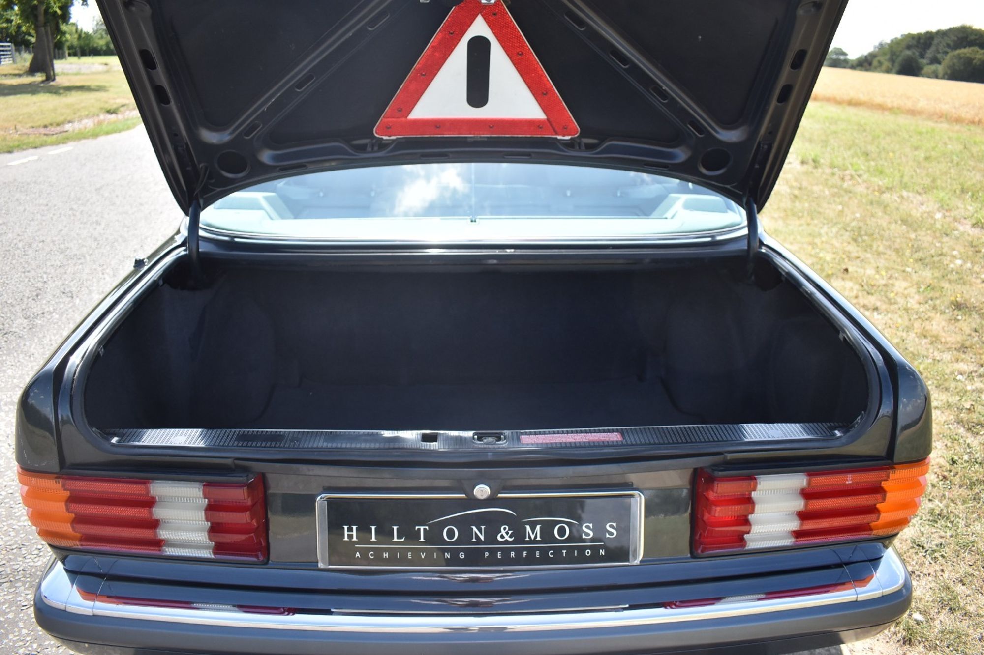 One of our regular clients is reducing his collection of cars, and has now made this late W126 500SE available for sale. With the M117 5-Litre V8 engine, this is one of the most desirable models of the range, and comes in the highly sought after colour combination of DB199 with grey leather interior. The car is presented in outstanding condition, better than many with less than half the mileage. At the end of last year we carried out multiple jobs on the vehicle, both mechanical and cosmetic, using only original Mercedes-Benz parts. We are in receipt of invoices totalling £10,000 for this work, which included fitting new front wings, headlights, bumper chromes and windscreen. We carried out a full service on the car and in addition, the rear differential and transmission have been serviced. All 5 wheels were fully refurbished, and all 5 tyres were replaced (Continentals). You can be assured that this is one of the finest 500SE Mercedes for sale on the market today. This car is loaded with factory extras, all of which are in full working order. The extras included are •Air Conditioning •Acceleration Slip Regulation (ASR) •Anti-Lock Braking System (ABS) •Cruise Control •Electric Front Seats •Driver’s Seat Memory Function •Rear Electric Blind •Rear Passenger Spotlights •Central Locking •Electric Windows •Electric Sunroof Other Extras •Thatcham Approved alarm/immobiliser with remote locking function •Bosch Wind-Tone Horns •Battery Isolator •Integrated USB Port (hard-wired beneath lower dash) •New Speakers front & rear •Sony CD Player This is a very well looked after car that has had a large sum of money spent on it in the last few years. Do not hesitate to get in touch to discuss further. Viewings are by appointment only.Specification
