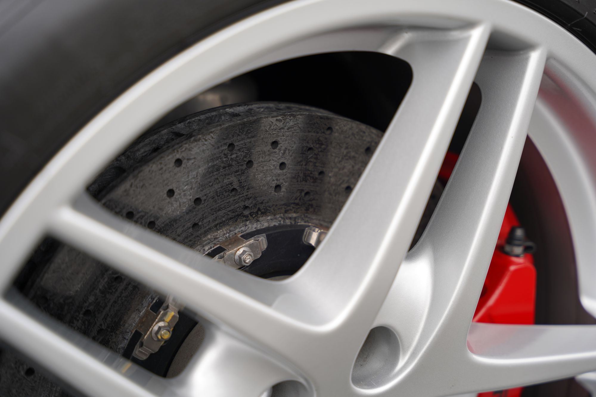 Having covered just 15,850 miles from new, the condition of this Ferrari is amazing throughout. The exterior features PPF coverage to the front bumper, and the Rosso Corsa paint presents in great condition. The desirable Scuderia Ferrari wing shields are optioned on the front wings. The interior is in excellent condition, with no signs of the 'sticky buttons' issue being present, an issue that affects many Ferrari of this era. Additional interior specification includes a Carbon Fibre Drivers Zone and a yellow faced tachometer. A complete tool kit and tyre inflation set are present with the car. Notably, this Ferrari also features a retrofit carbon ceramic brake setup, an expensive factory option when new, with carbon ceramic technology still being relatively new at the time.