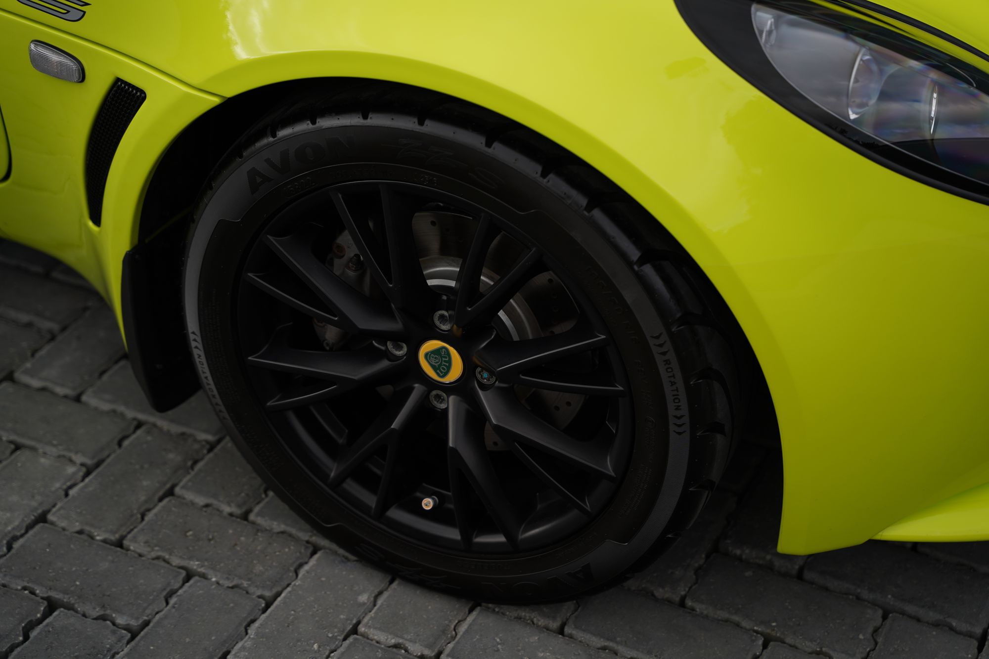This particular example is finished in the highly desirable CSR (customer-specific request) Krypton Green. It features a number of factory options and upgrades that make it very special, including a factory one-off striking lime green and black interior with twin silver and black contrast stitching. The car is also fitted from the factory with a Lotus Sports Exhaust.