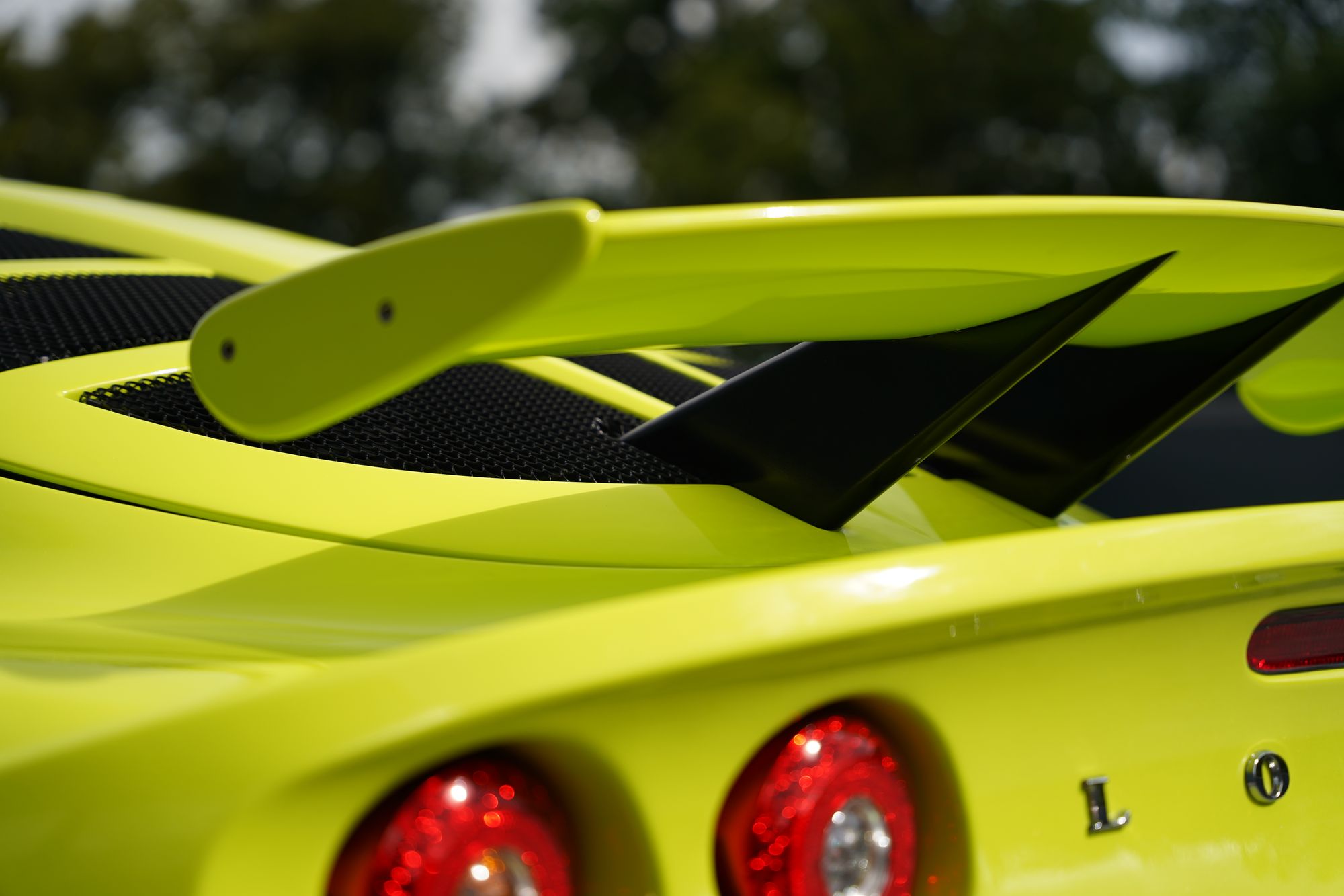 Built with a fibreglass body on an aluminium chassis, the Exige S features aerodynamic enhancements such as a front splitter, rear wing, and flat undertray to boost downforce and handling. Its minimalist interior includes lightweight bucket seats and unassisted steering for direct driver feedback.