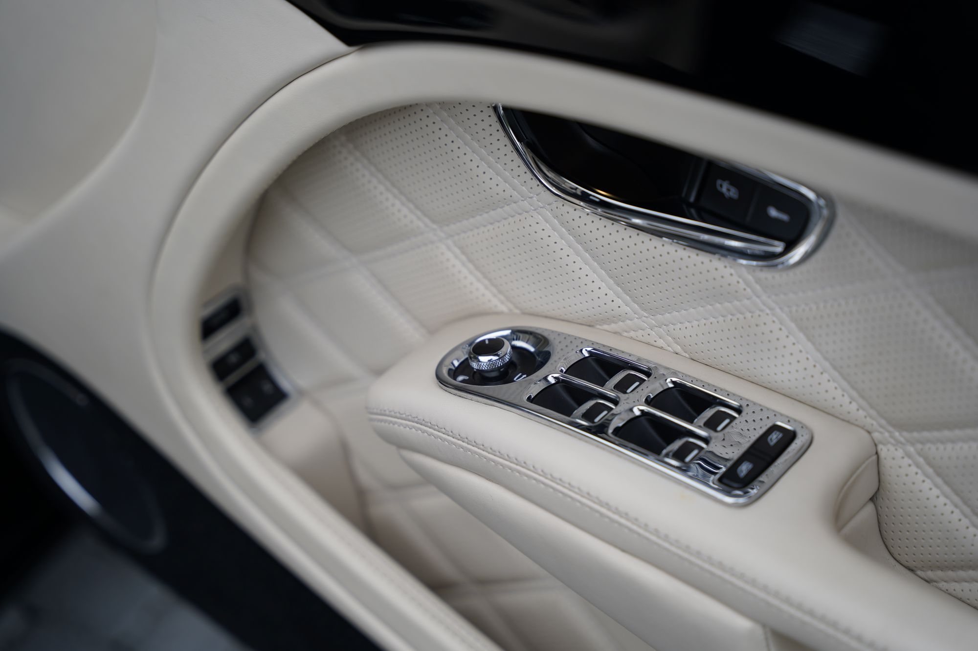 Returning to the exterior, the car rides on 21-inch two-piece Mulliner alloy wheels. The bonnet features the famous ‘Flying B’ radiator mascot sitting above the dominant bright finished stainless steel ‘Matrix’ style grille. The stainless-steel bright finishing continues with ‘Flying B’ wing vents and door pillars. All four doors feature the soft-close latching, with the boot featuring a power close function.