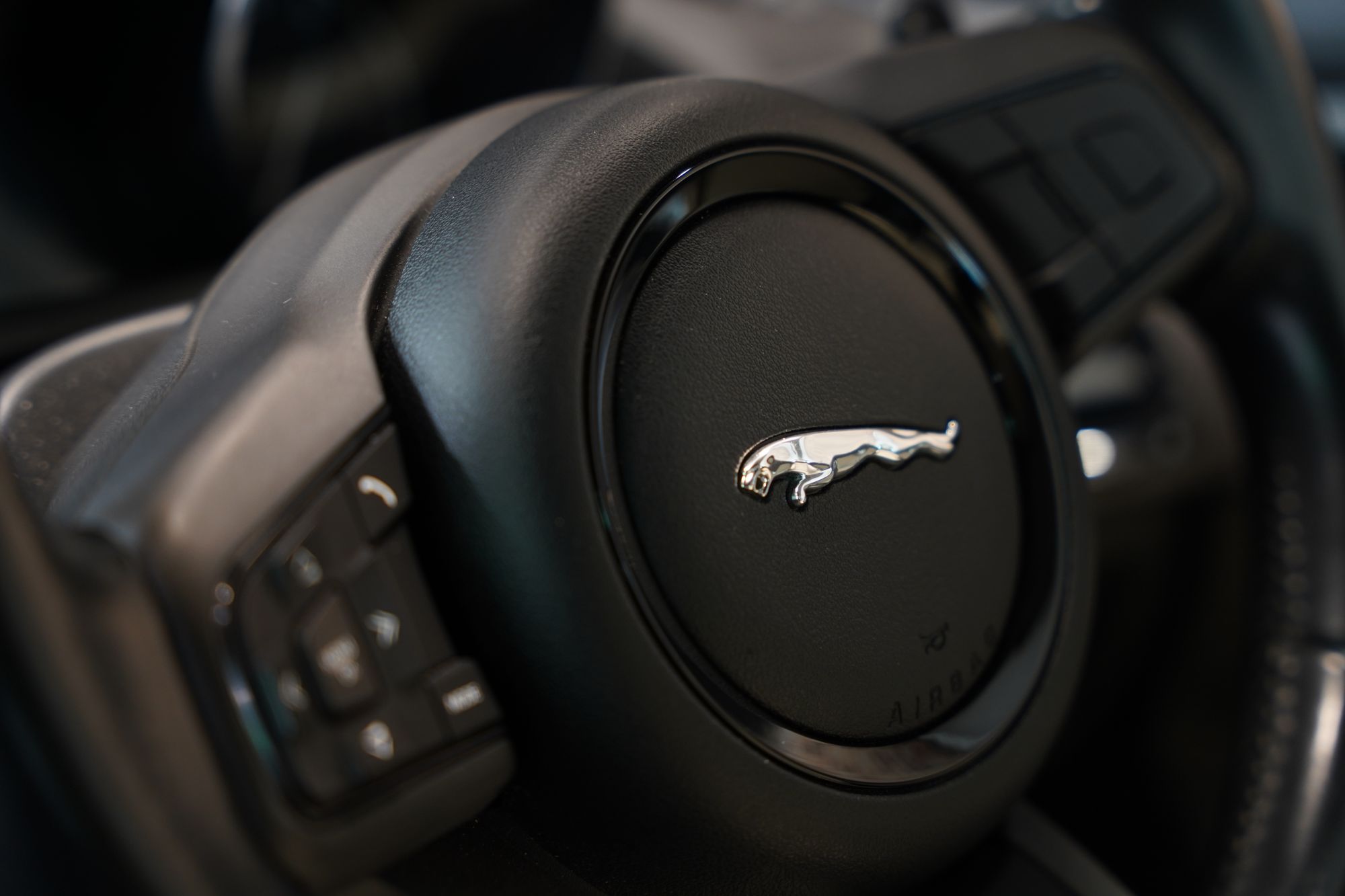This particular Jaguar left the showroom in May 2015 and has covered just 32,000 miles since. The car is a top specification example finished in Santorini black metallic paintwork with a cream premium leather interior. The exterior is finished with 19-inch Orbit diamond cut wheels and a panoramic glass roof.