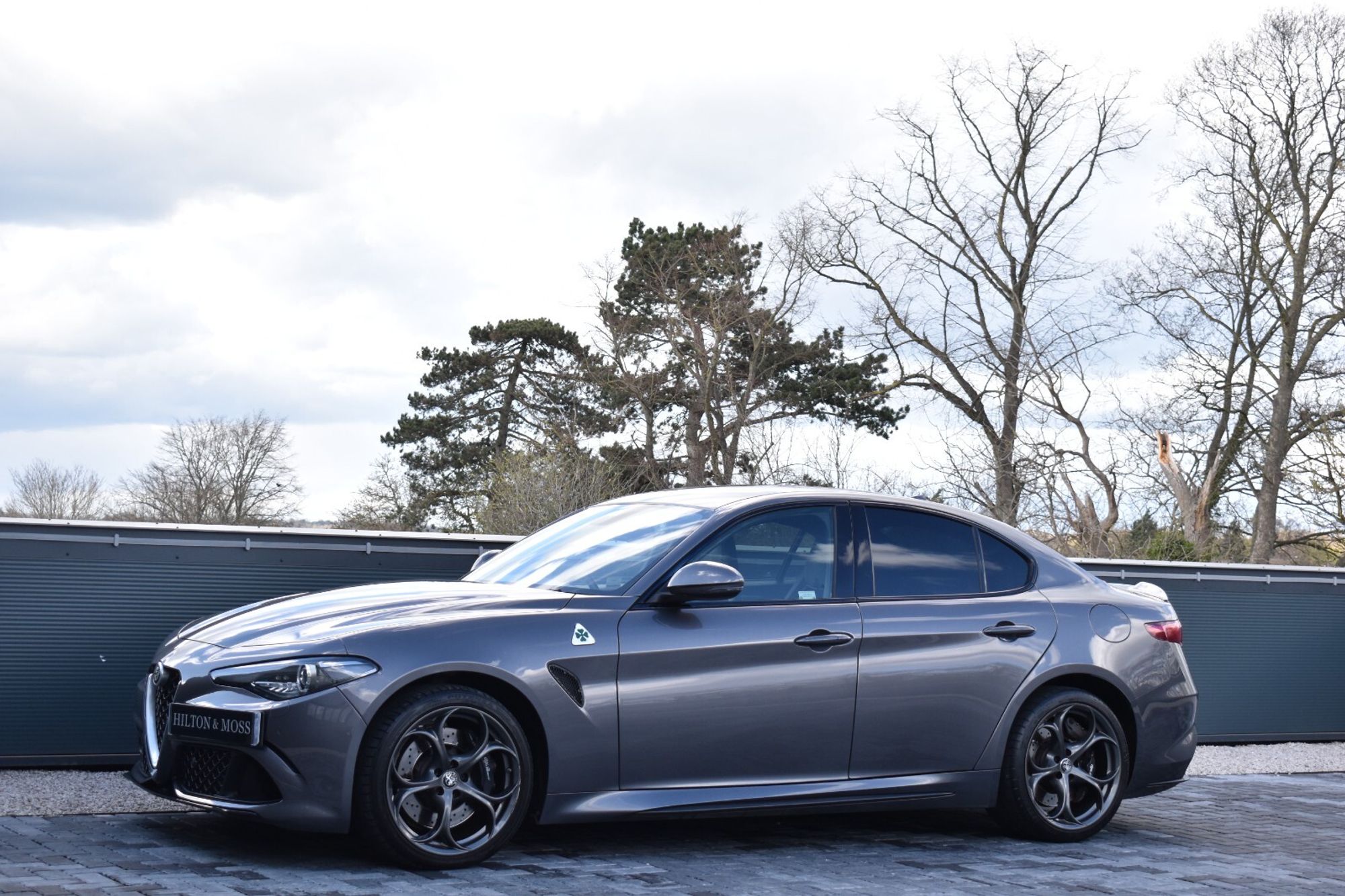 We are pleased to bring this top specification Alfa Romeo Giulia Quadrifoglio to the market. First released in June 2015 the Quadrifoglio was an instant success and labelled a true motoring great. The beautiful Giulia saloon body hides a 2.9 litre bi-turbo engine developed by Ferrari technicians exclusively for Alfa Romeo. The V6 engine produces 502 BHP which is all sent to the rear wheels through an 8-speed ZF gearbox. A limited slip differential and carbon fibre prop-shaft only further enhance the drive of this Alfa Romeo. This particular car was sold new in January 2018 and has had just two former keepers since. Finished in Vesuvio Grey with optional extra 19-inch dark Quadrifoglio wheels this Giulia looks incredible. Privacy glass and black painted brake calipers give this car a sleek finish. In the cockpit this Alfa is finished with a full black leather interior with a red contrast lower dash section. A leather and Alcantara sports steering wheel was also added only further enhancing the drive and feel of this Giulia. Most notably the very rare and expensive carbon shell sports seats have been added to complete the perfect interior. Further extras include the convenience pack and Harmon Kardon sound theatre system. This Alfa Romeo has covered just 29,000 miles from new and has full main dealer service history. Most recently in January 2022 a major service was completed by Swindon main dealer ensuring the car is in top health. The car will be supplied with a 12-month warranty and is presented in fantastic condition. This is a great opportunity to own a very well kept, low mileage and top specification Quadrifoglio. Speak with our team to secure this vehicle today. We offer competitive finance and welcome part exchange.