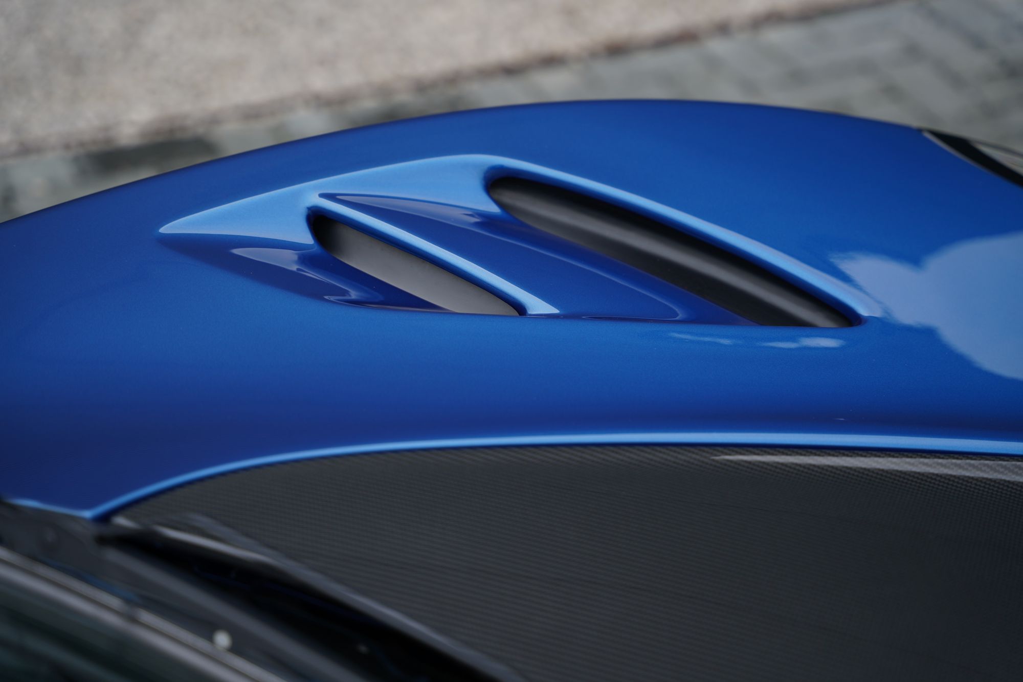 Finished in the elegant Essex Blue, and specified with the exterior Black Pack, the car also features subtle hints of silver and red for the perfect colour combination. Alongside the newly refurbished Arctic Silver lightweight forged wheels you’ll find silver pinstriping on the front bumper inserts, front clam access panel and carbon hard top as well as the rear spoiler mounts. Minimal hints of red are provided via the purposeful AP Racing brake calipers, 430 CUP decals and the fixed rear tow strap.