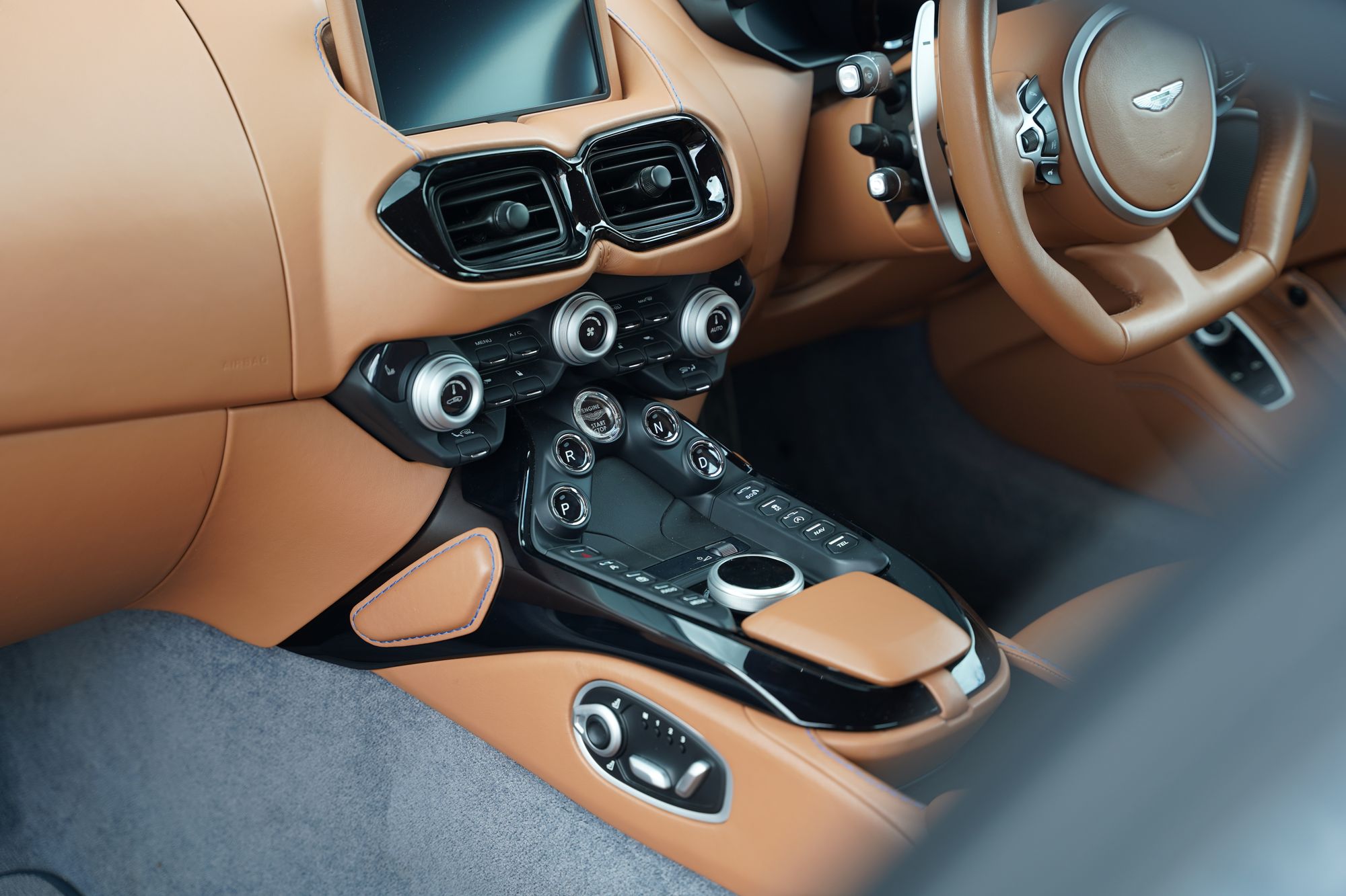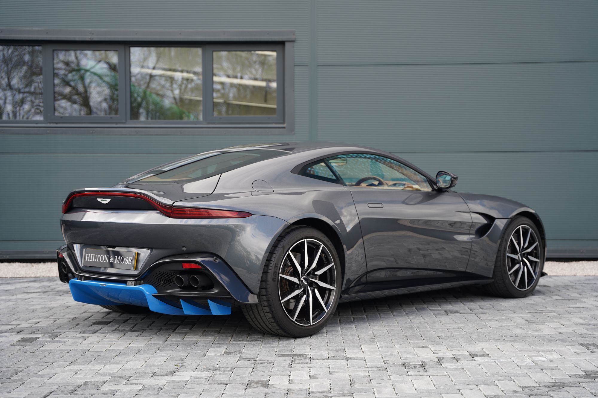 This particular Vantage was first registered in March 2019 and was a totally bespoke client ordered vehicle. Finished in Xenon Grey, a beautiful colour with a very high metallic content this car looks incredible. The interior is finished in the totally unique Copper Tan with an extended full leather headlining and contrast blue stitch. The vehicles exterior detailing is continued in Cobalt Blue which ties in perfectly.