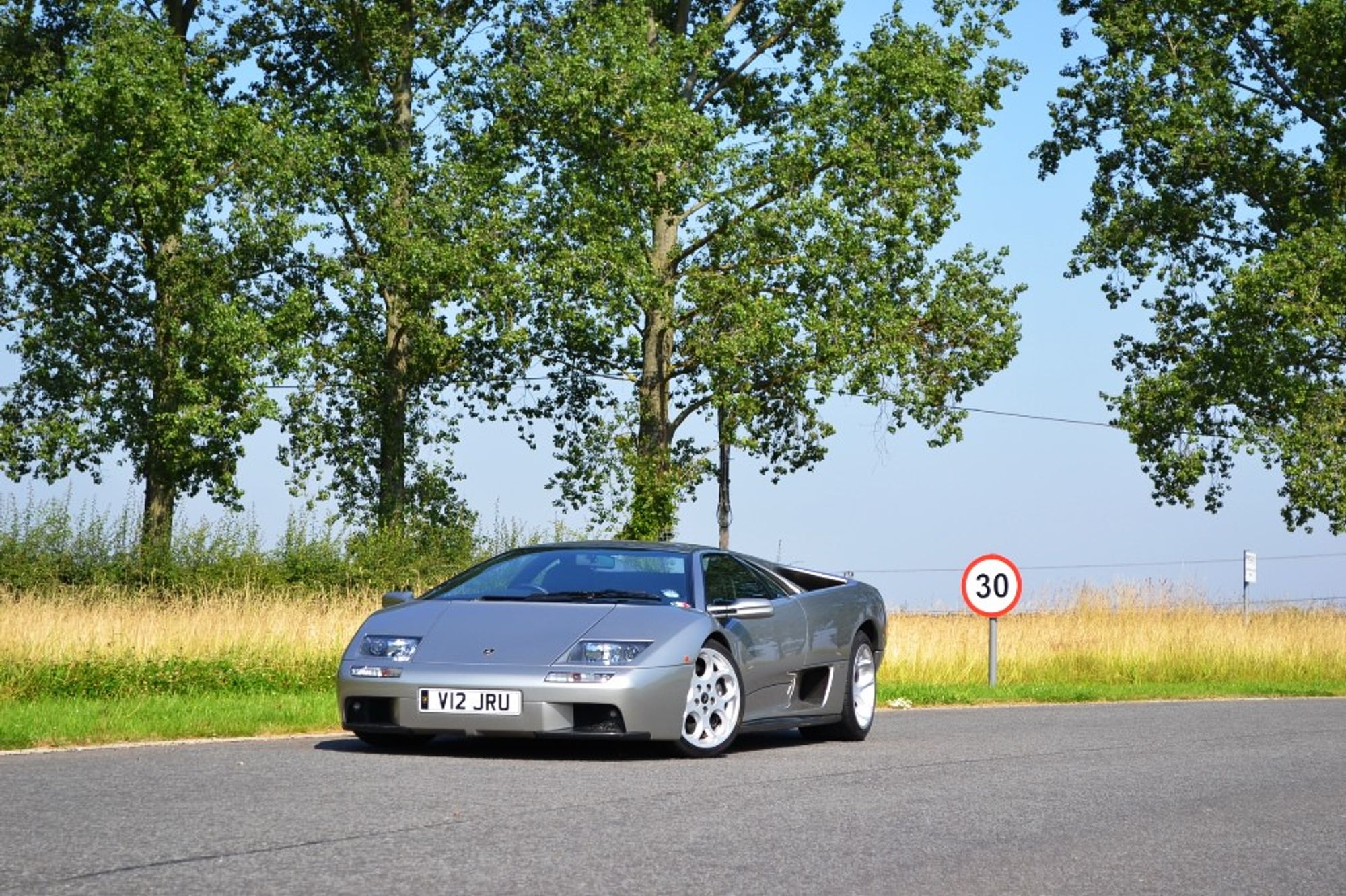 Presented in a most appealing colour combination of Millenium Silver with black leather, grey alcantara with contrasting silver carpets and stitching. This 6.0 VT is in fantastic condition indeed and comes complete with a fantastic history file including the original pricelist and bill of sale plus service invoices and MOT history. Having been used on a regular basis and completing a 5,000 mile European trip only recently this Diablo benefits from having never been sitting unused for prolonged periods and drives all the better for it. Complete with a full and detailed Lamborghini service history with the last being carried out by Carrera Sport at 26,076 miles where a sports exhaust was also fitted although the standard exhaust is available by separate negotiation if required.